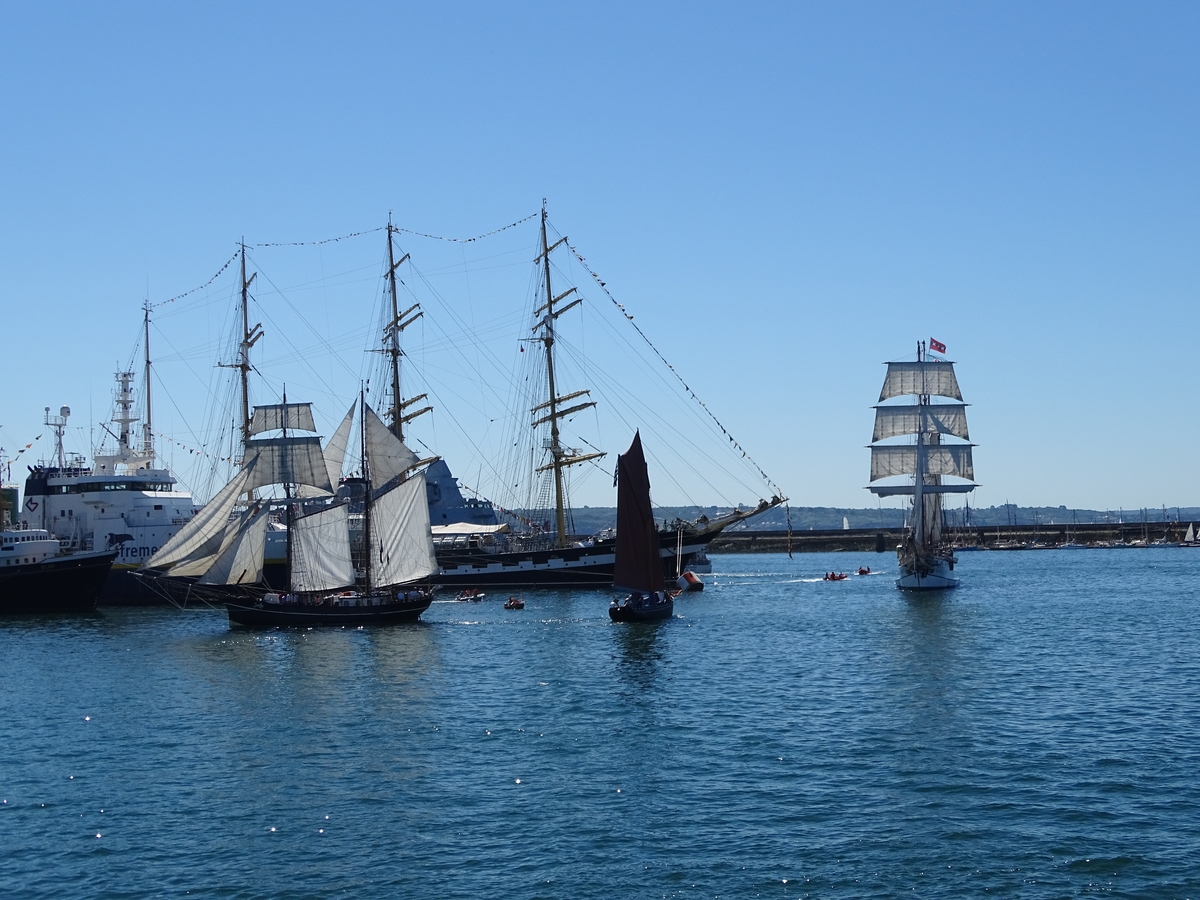 Général Leclerc (France) et Jantje (Pays-Bas) (sans oublier... Musikboat !) devant Krusenstern (Russie) - De face Loth Loriën (Pays-Bas)