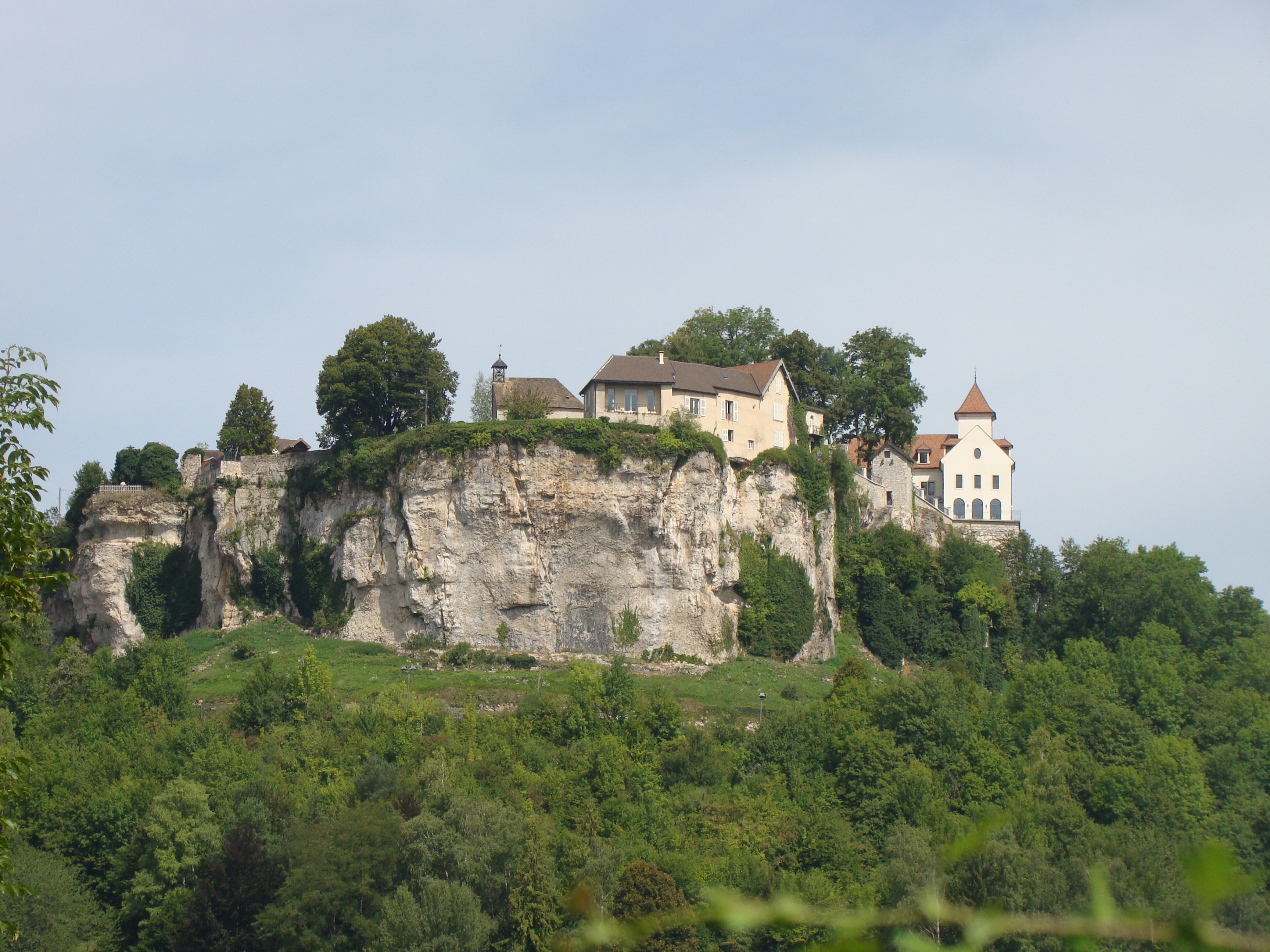 Le rocher où se dressait autrefois une forteresse. Celle-ci fut construite au Moyen-Age et rasée en 1674, lorsque les armées de Louis XIV envahirent la Franche-Comté. Seule la chapelle du château, datant de 1289 et dédiée à Saint Georges, fut épargnée.