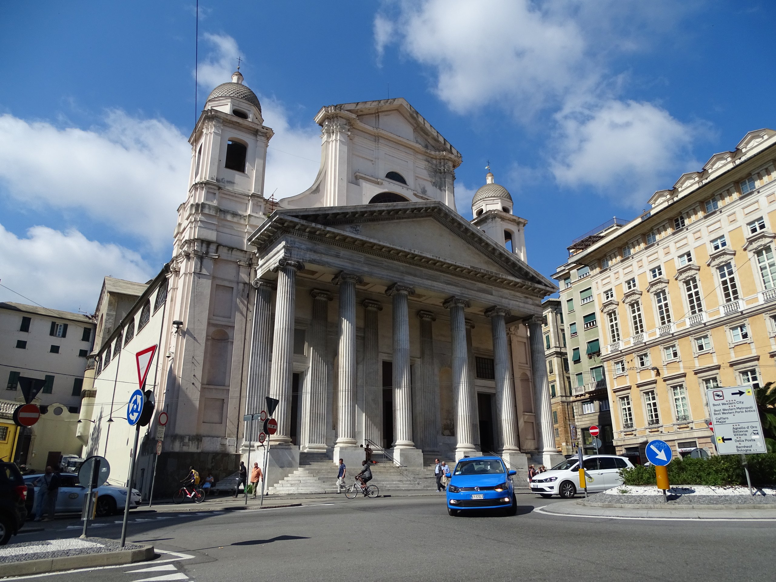 Église Santissima Annunziata del Vastato, considérée comme très représentative de l’école génoise, typique du maniérisme tardif du XVIIe siècle. La façade néoclassique date du XIXe siècle.