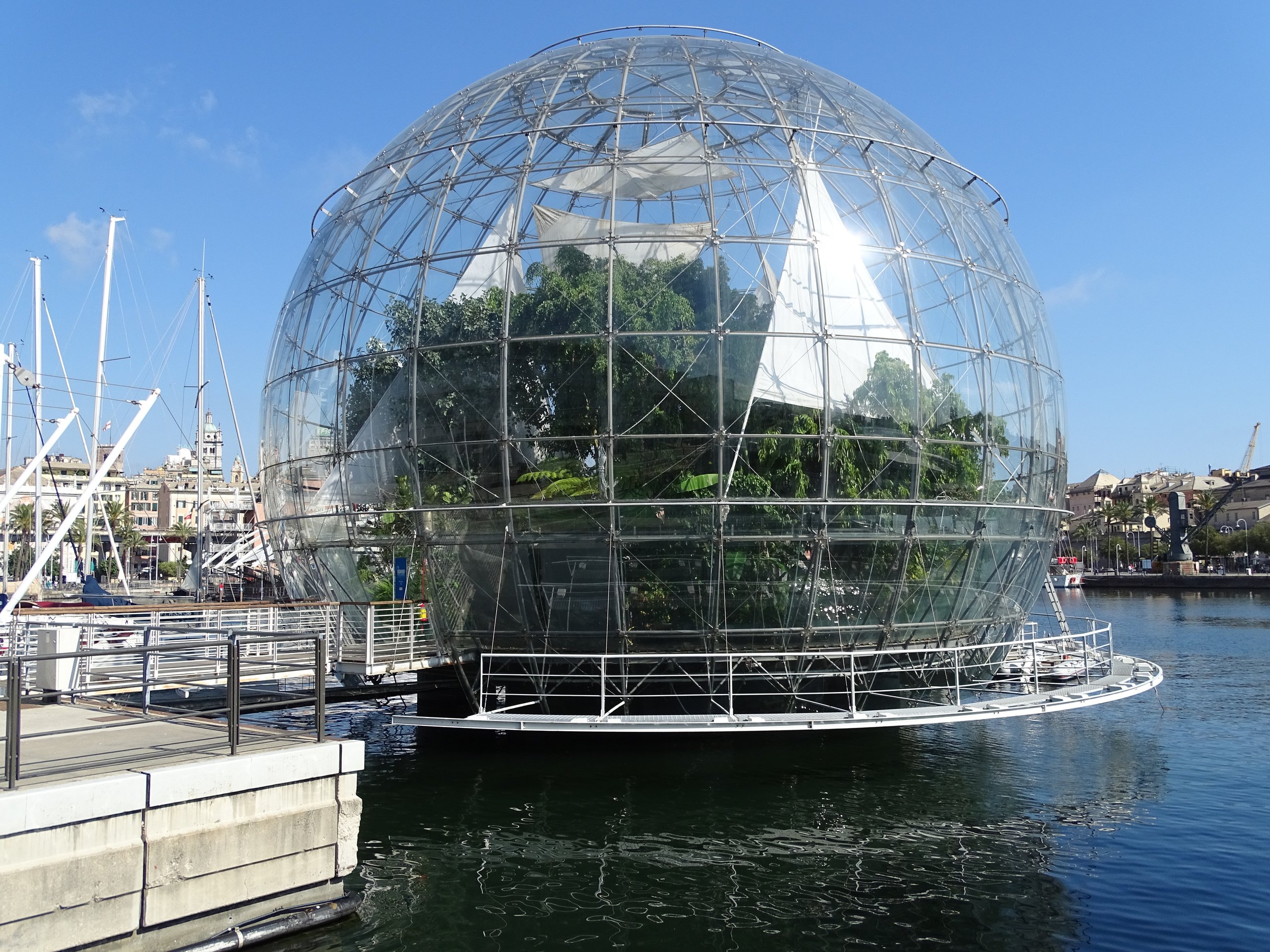 La "Biosphère", imaginée par Renzo Piano, abrite plus de 150 espèces de plantes, ainsi qu'une forêt tropicale qui compte de nombreux oiseaux, papillons et reptiles.