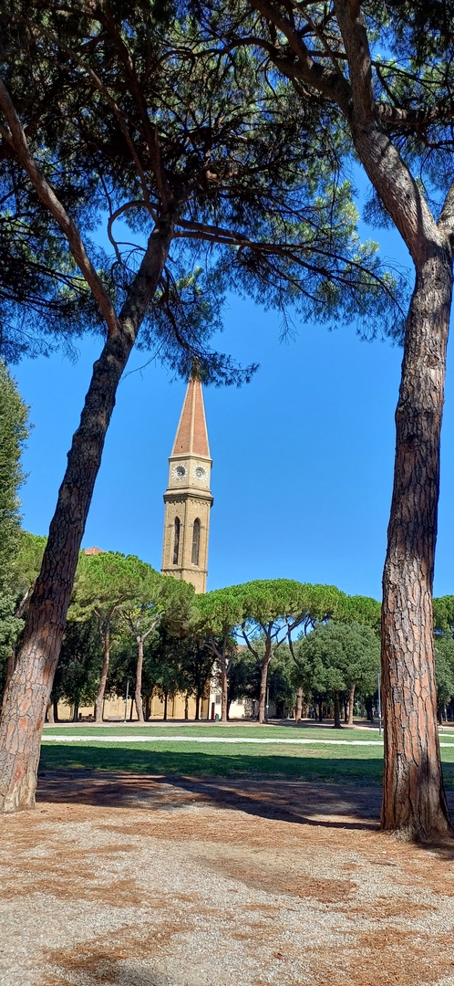 Arezzio - Le parc de la forteresse Medicéenne et le campanile de la Cathédrale San Donato (Duomo)