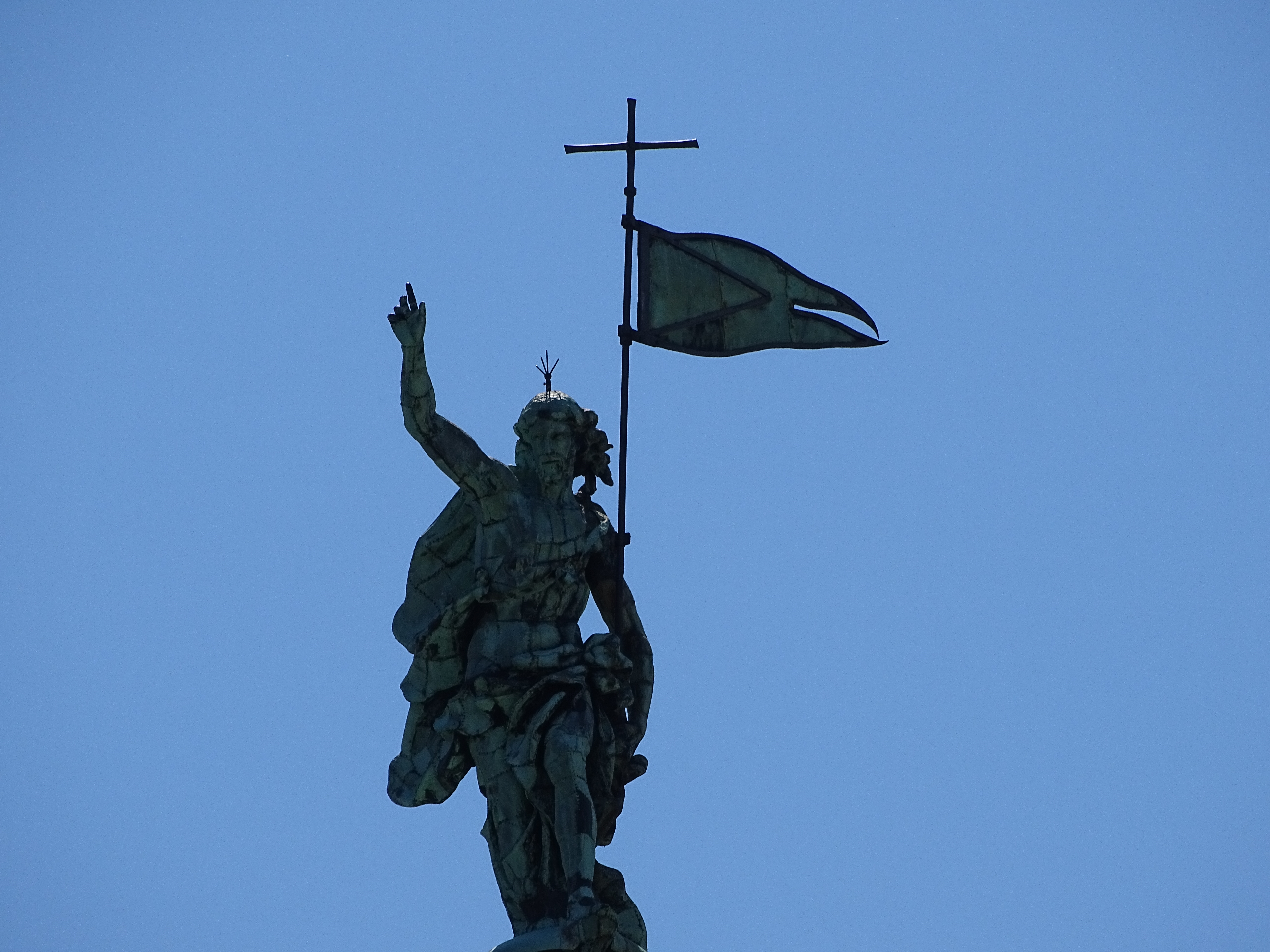 La statue du Rédempteur au-dessus de la Chiesa di San Simeon Piccolo ou Santi Simone e Giuda Apostoli (église Saints-Siméon et Jude), située au bord du Grand Canal